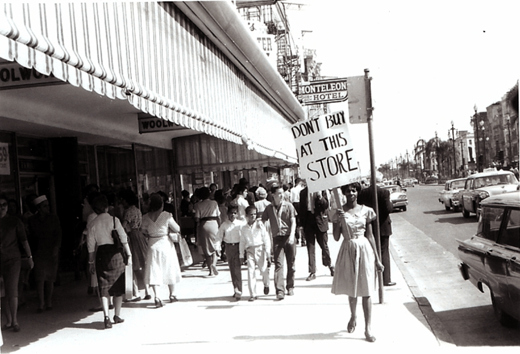 In April 1960, the League launched a boycott of the Dryades stores that wouldn’t employ blacks for anything but menial labor. The boycott was effective. The week before Easter was traditionally a good time for business, but on Good Friday the streets were empty. Shoppers were replaced by community members picketing the storefronts.